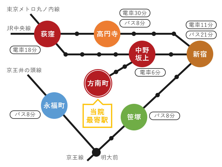 東京メトロ丸の内線「方南町駅」からクリニックまでのアクセス