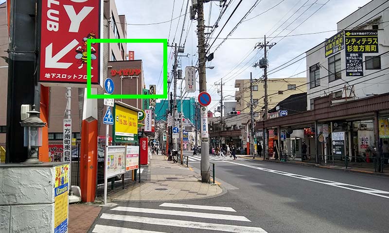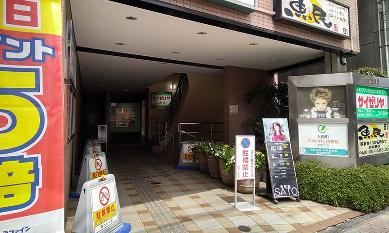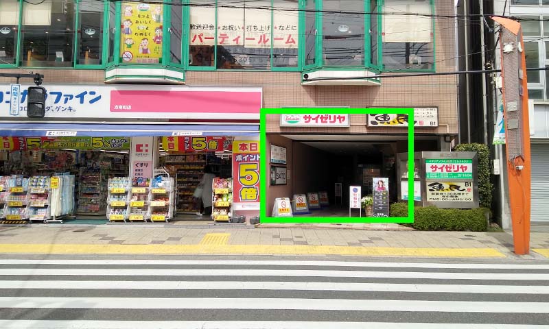 しばらく進みますと、「サイゼリア」の看板のあるビルが見えてきます。こちらが当クリニックのあるビルになります。